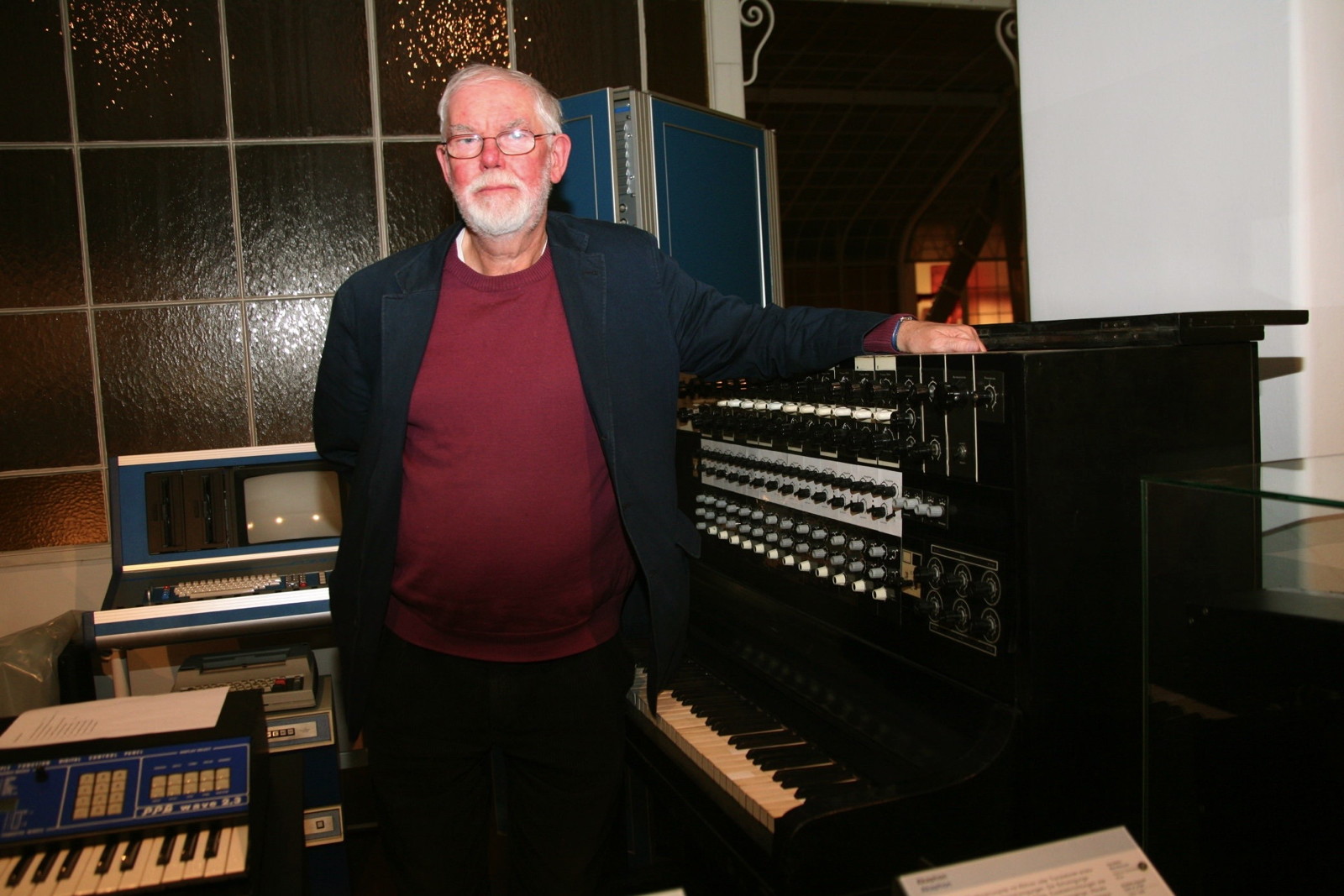 Dieter Kaufmann vor dem Akaphon im Technischen Museum Wien
