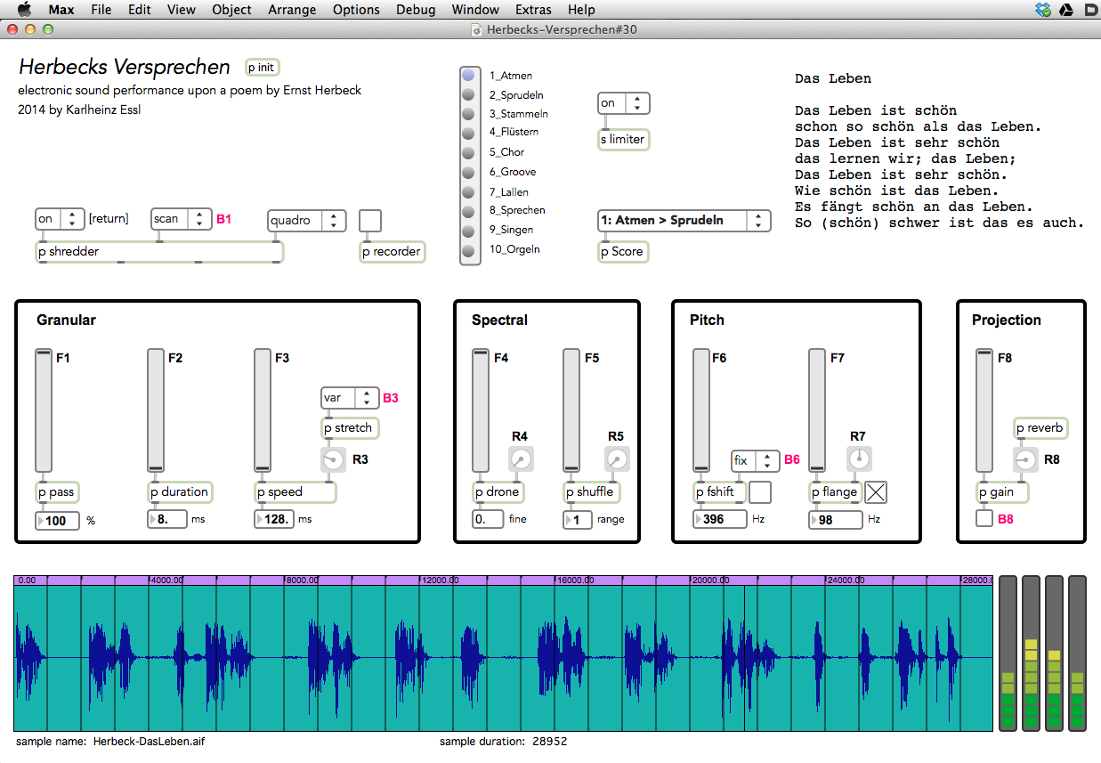 Herbecks Versprechen - graphical user interface of the original MaxMSP program