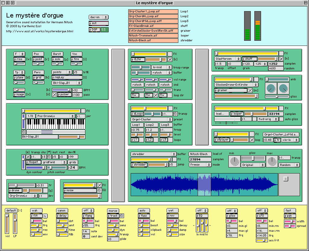 Excerpt from Karlheinz Essl's generative sound environment Le mystère d'orgue