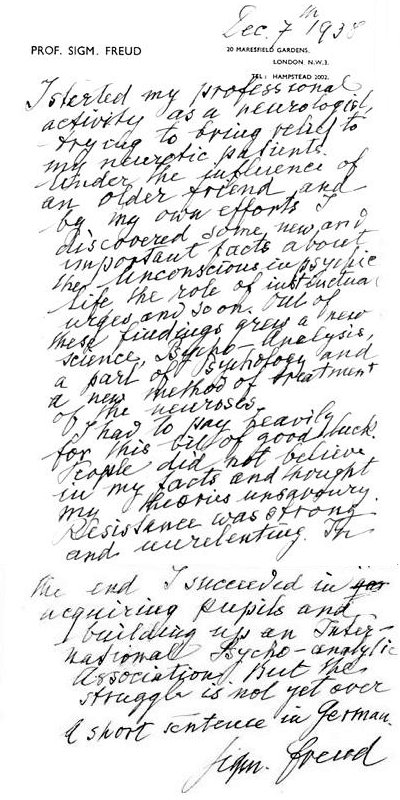 "I started my professional activity as a neurologist, trying to bring relief to my neurotic patients. Under the influence of an older friend and by my own efforts I discovered some new and important facts about the unconscious in psychic life, the role of instinctual urges and so on. |