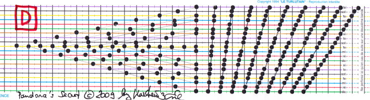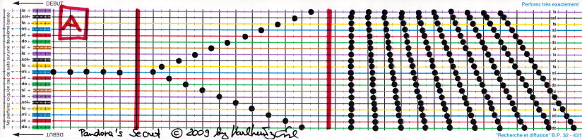In June 2008 some soloists playing different instruments came together for a concert at the Alte Schmiede in Vienna to perform of a number of brand new Sequitur pieces by Karlheinz Essl. Sequitur is a series of pieces for solo instruments and live electronics. On that evening I was happy premiering Sequitur V for toy piano and live electronics, together with the composer. Karlheinz himself was also performing on the electric guitar and later in the evening played a piece called non Sequitur for music box and live electronics. The piece and the composer's comical interpretation immediately appealed to me. At that time I was already working more than one year on the preparations of my CIRCUS LEBASI, a clownesque evening programme for a toy piano soloist, two jugglers/clowns and a nine-piece band, which was a commission by Linz09 - the European capital of culture in 2009. It occured to me that such a piece for music box and live electronics would fit very nicely in my Circus programme in which I would mainly play music for toy piano. When asking Karlheinz what he thought about this idea it turned out that the performance of non Sequitur was mainly improvised and could not easily be "repeated" by another performer. After thinking about it Karlheinz later had the idea of composing a new piece which would use the material I was so interested in: the punch-tape controlled music box and live electronics. So it happened that Linz09 commissioned Pandora's Secret for my CIRCUS LEBASI.The piece starts when the performer finds a beautiful present on a table. In fact in the actual performace of CIRCUS LEBASI it is one of the clowns who happily presents a beautiful package with a brightly colored paper and a huge red ribbon around it to the performer. The Circus lady in white tails sits down and starts investigating the package. As there is a small contact microphone inside the package (on the music box) all the sounds made are already amplified and going through a special electronic programme. It takes a while until the performer manages to open the package discovering a wooden box and four punched tapes. Playing around with the wooden box it turns out that the top part opens up. Inside that top part there happens to be a music box ("Spielwerk") with a crank. The performer tries out all sorts of sounds, also winding the crank in the "wrong" direction. Through the whole piece all produced sounds always run through the electronic programme and are also regulated with a small MIDI controller. After a while the performer discovers the punched tapes. She carefully looks at the first one and tries to put it through the music box. Only after finding the "right" direction of winding the tape starts to move into the music box producing single notes. Later the music gets more and more intense producing long arpeggios. The Circus lady enjoys all the different sounds and is surprised what comes out of her little wooden music box. She is very happy and amazed by it all until the very end of the fourth punched tape when everything gets extremely loud and shrill so that she covers her ears with her hands and ducks her head until the sounds start to disappear. That's when the piece ends.